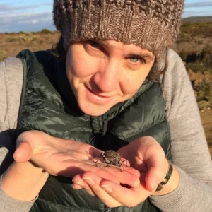 Kate holding a Tasmanian mountian katydid, probably its own unsubscribed species.