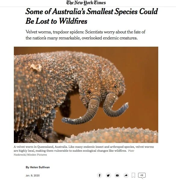 New York Times Article - Bushfire and Australian Invertebrates